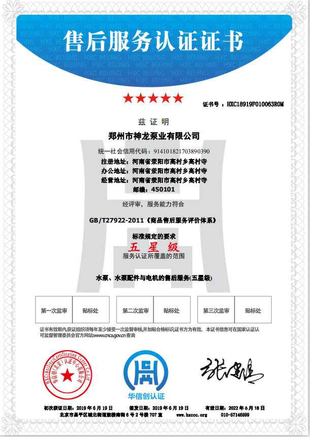 祝贺广发体育·广发官方网站-广发体育(中国)获得水泵、水泵配件与电机的五星级售后服务认证。